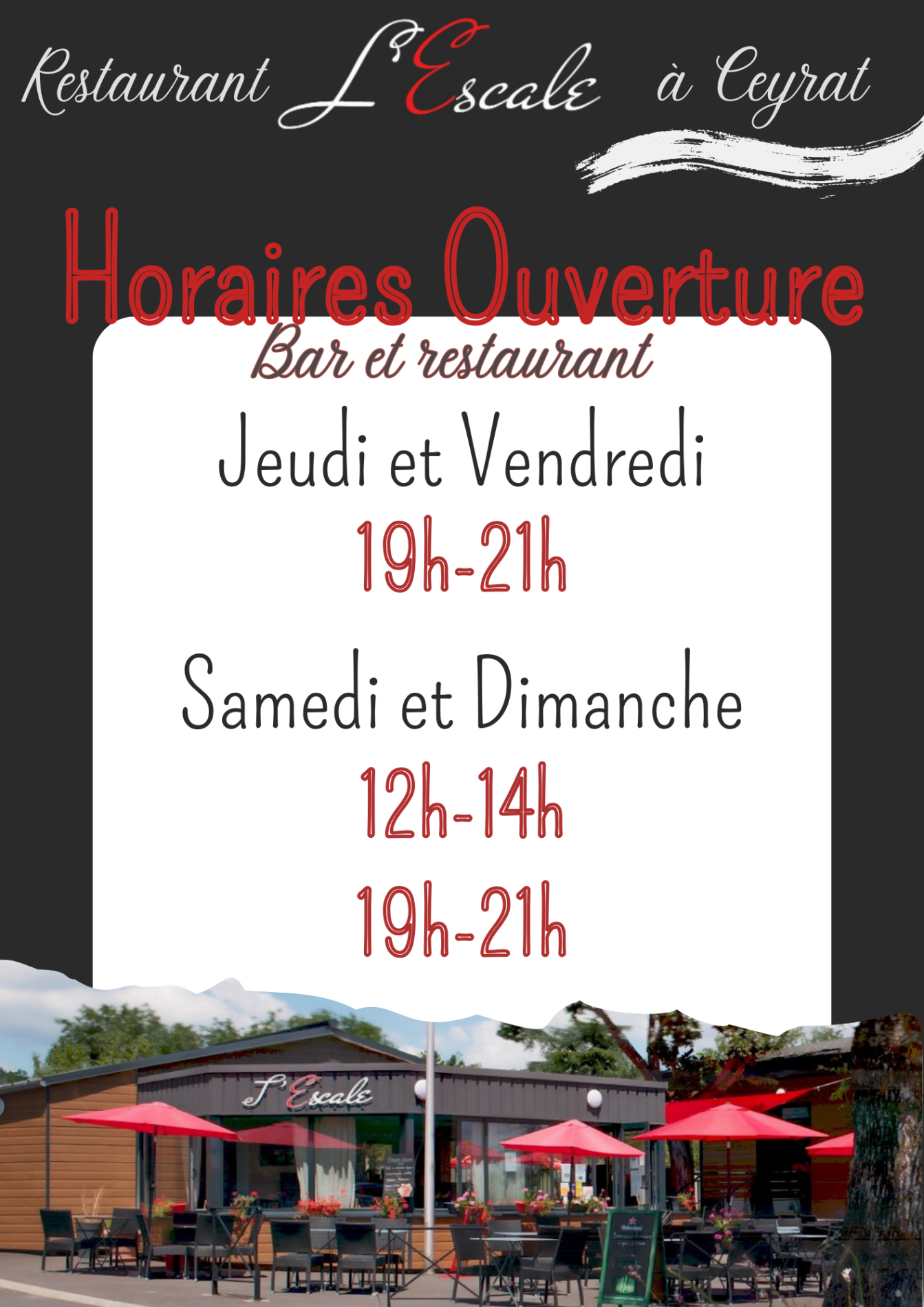 Réservations au 07 81 17 35 60 ou par mail : lescale.ceyrat@gmail.com
